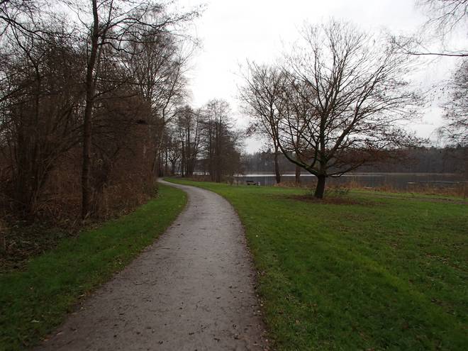Runde 3 12.09 Uhr / 13,0 Km Auch am nördlichen Rande des Sees gab es ein kurzes Stück durch den Wald. Aber so schön wie im Süden war es nicht. |