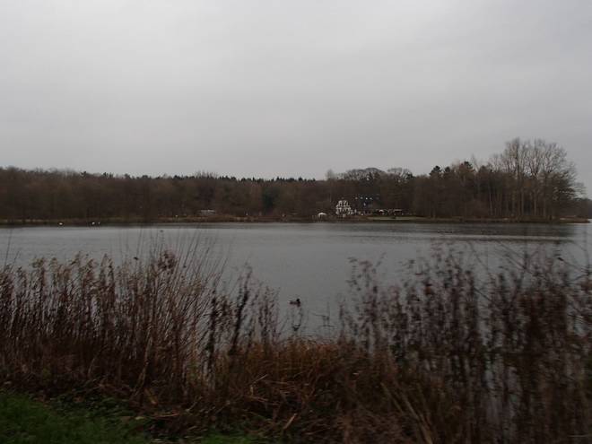 Runde 9 14.36 Uhr / 41,9 Km Über den See konnte man schon das Café-Restaurant sehen. Da war auch das Ziel. Das war aber immer noch ein Stück zu laufen. |
