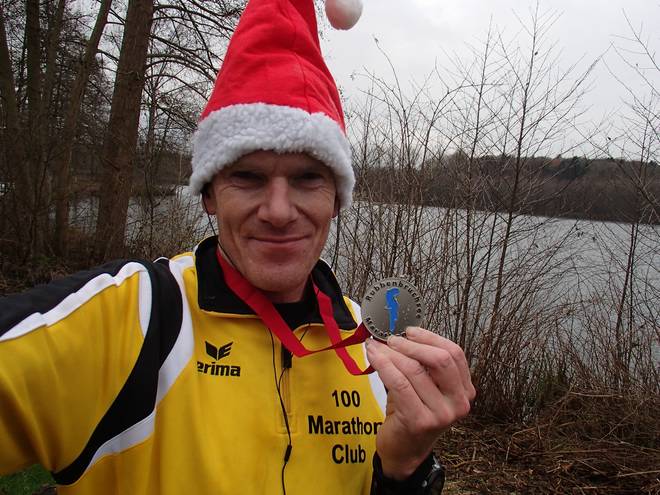 Rubbenbruchsee 14.42 Uhr Auf meiner Uhr, die ich erst hinter dem Ziel stoppte, hatte ich zwar nur 3:37:57 Stunden, aber egal. Am Ende landete ich auf Platz 7 von 48 Finishern, kam fast eine halbe Stunde vor der Damen-Siegerin ins Ziel und ich gewann meine Altersklasse M45 (sechs Starter, fünf Finisher). Dafür gab es aber leider keinen Pokal. |