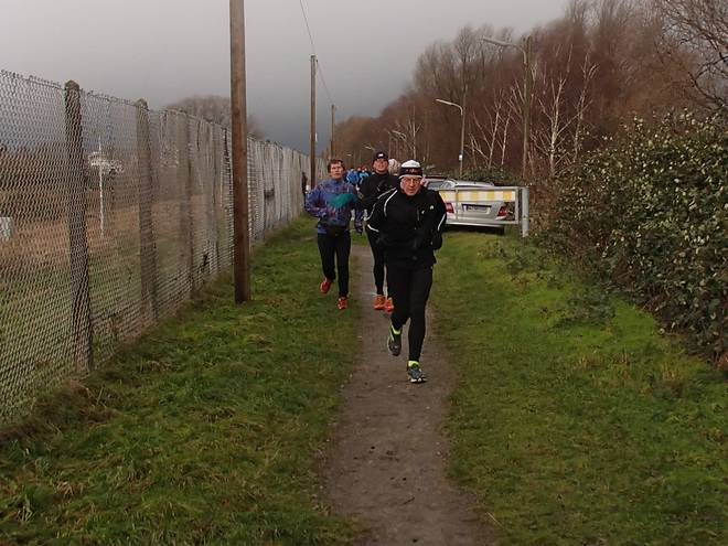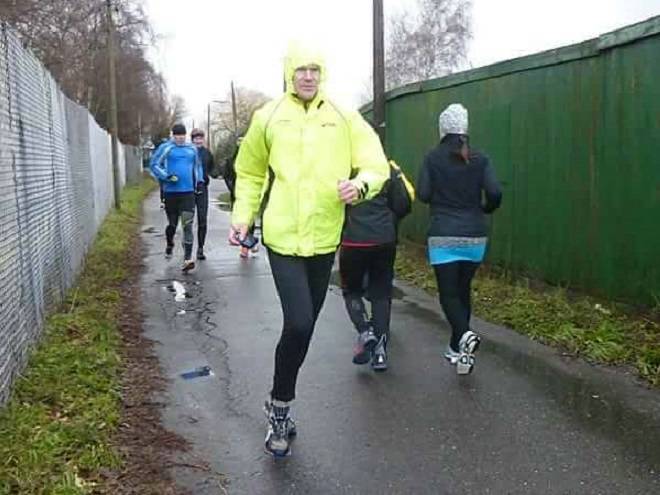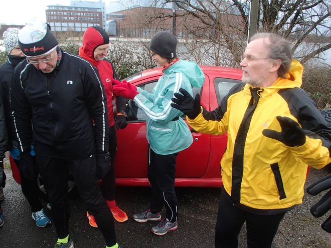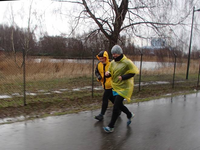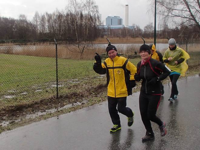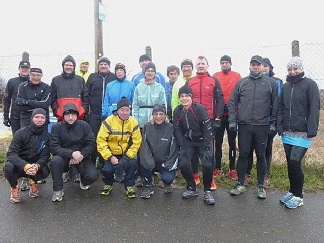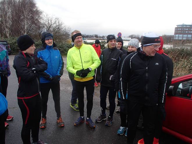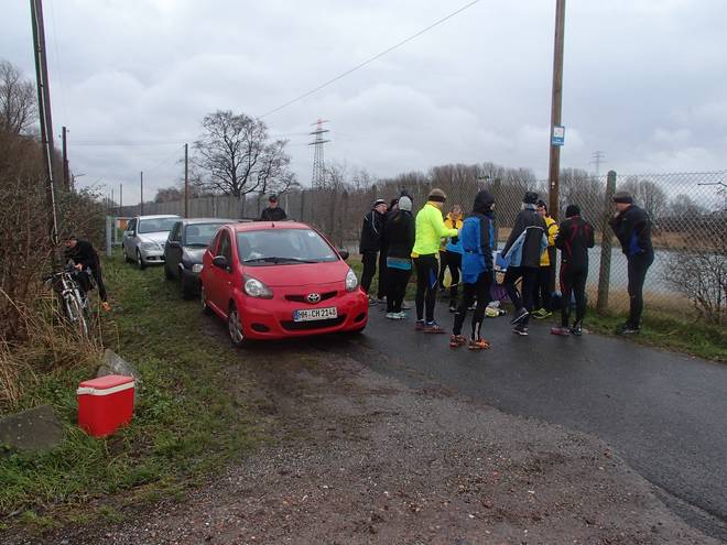 Kaltehofe-Hinterdeich 10.04 Uhr Von 24 Voranmeldern waren trotz des Mist-Wetters doch 21 Läufer angetreten. Foto: Christian |