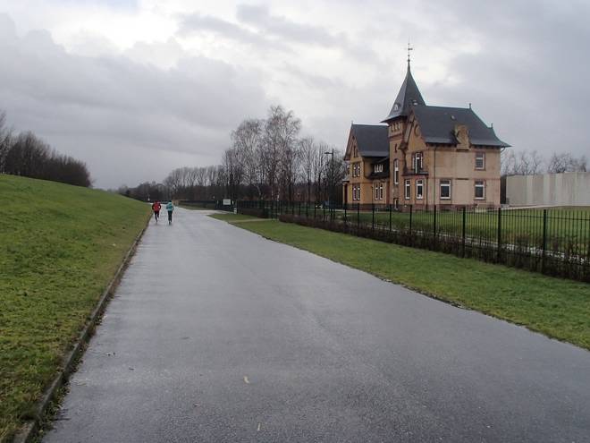 Kaltehofe-Hauptdeich Runde 2 10.43 Uhr / Km 6,6 Jede Runde ging es auch an der Villa Kaltehofe vorbei. Bis 1990 noch das Hygienische Institut. Heute Museum und Industriedenkmal und Sitz als der Wasserkunst Elbinsel Kaltehofe zu besichtigen. |