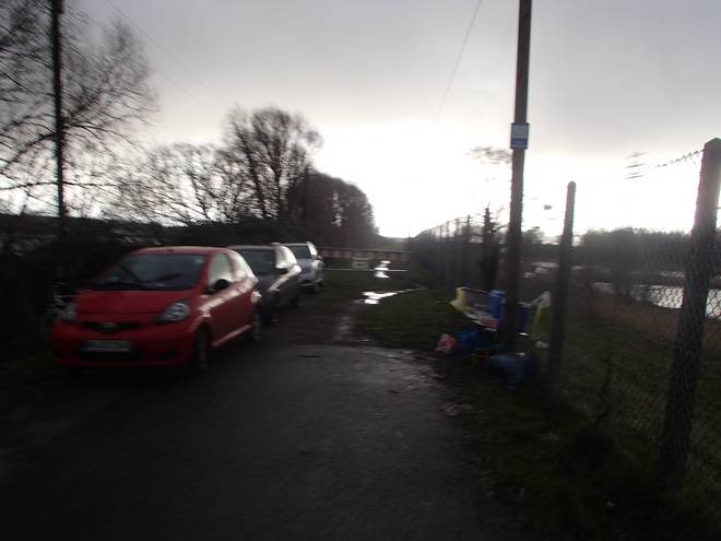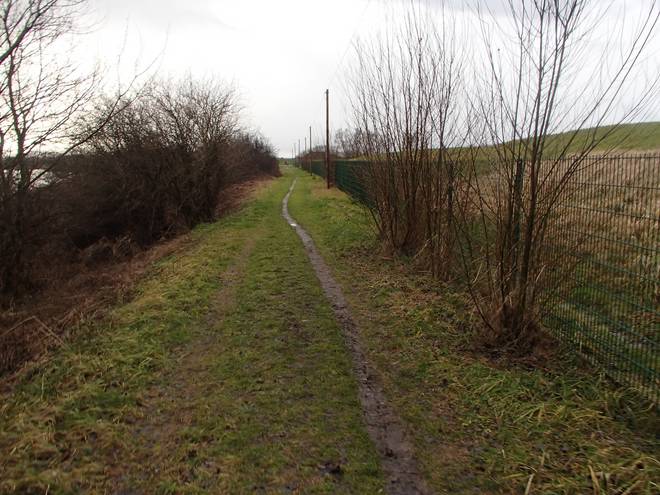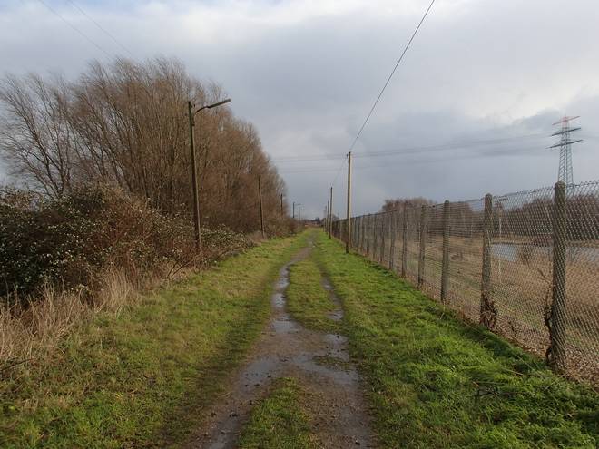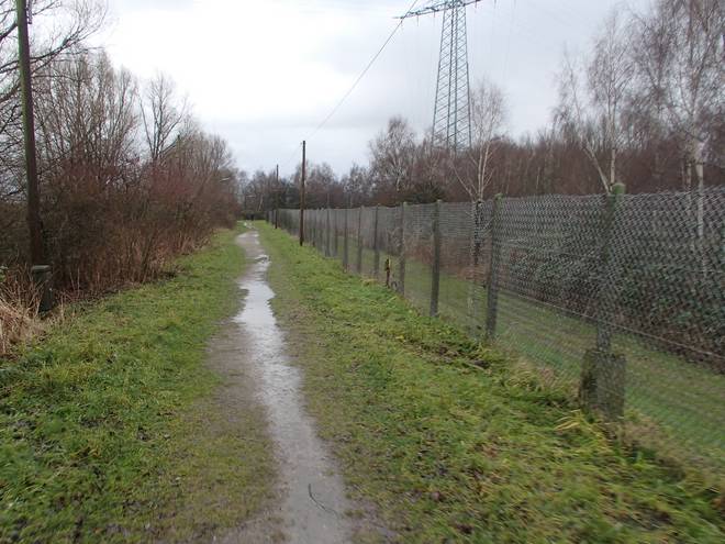 Kaltehofe-Hinterdeich Runde 10 13.02 Uhr / Km 32,5 Die unbefestigte Stecke wurde mit jeder Runde schwieriger zu laufen. Die Ecke hier, wo man zwischen Pfütze und tiefen Gras wählen konnte, war da noch relativ angenehm. |
