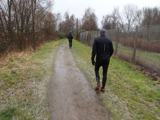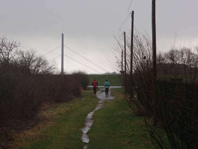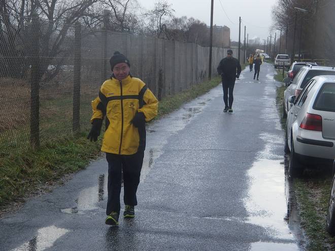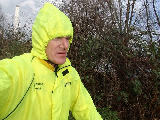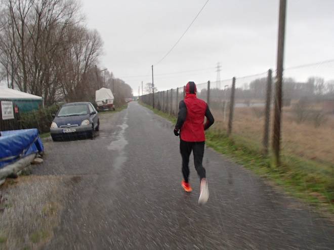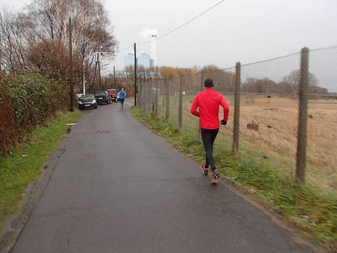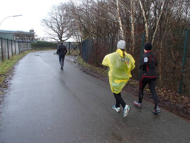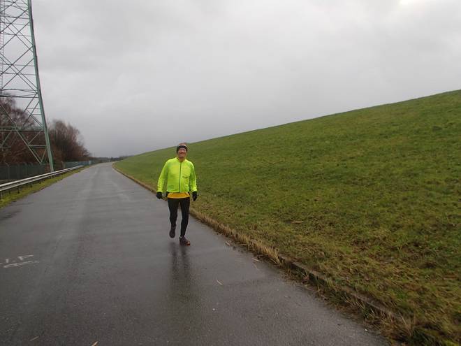 Kaltehofe-Hinterdeich Pendelstück 10.11 Uhr / Km 0,8 Erstmals lief ich mit einer Regenjacke. Bei dem zu erwartenden Wetter schien mir das die beste Variante. Foto: Christian |