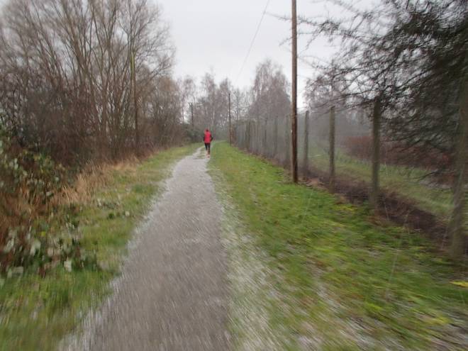 Kaltehofe-Hauptdeich Runde 6 11.59 Uhr / Km 20,7 So ein Sauwetter. Vor allem auf der Westseite hinter dem Deich hatte man mit dem Sturm zu kämpfen. Und wenn dann noch Regen, Schnee und/oder Hagel dazukamen, wurde es (gelinde gesagt) unschön. |