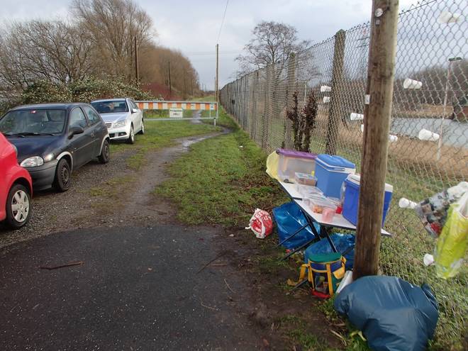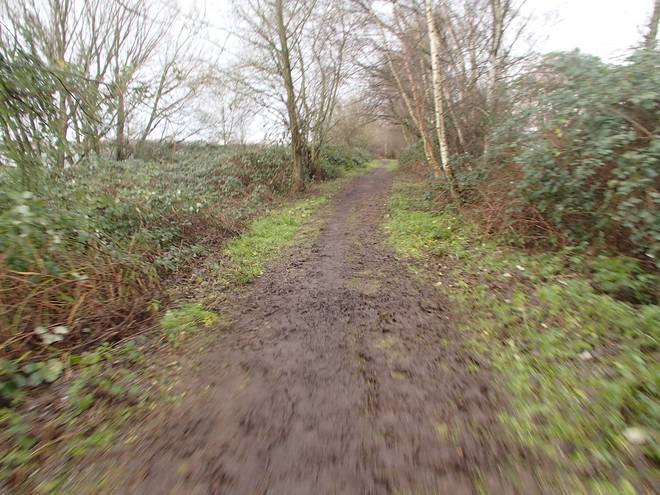 Kaltehofe-Hinterdeich Runde 11 13.21 Uhr / Km 36,0 Das war ein ziemlicher Matsch, den wir da produziert hatten. In der ersten Runde war das hier noch ein fast normaler Weg, inzwischen mußte man schon aufpassen, wo man hintrat, um nicht auszurutschen. |