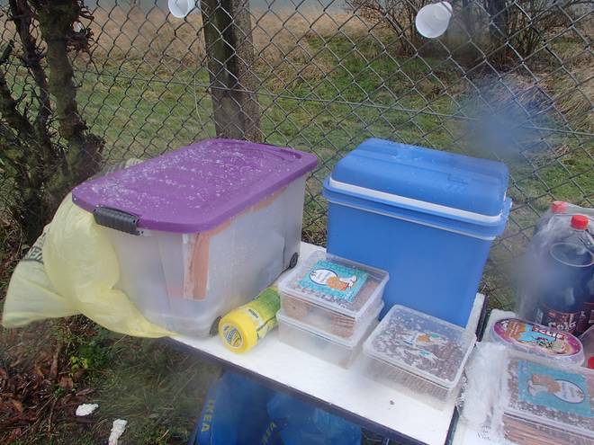 Kaltehofe-Hauptdeich Runde 12 13.46 Uhr / Km 40,8 Da drin war es warm und es gab eine beheizte Toilette zum Umziehen. Und die Ausstellung wollte ich natürlich auch sehen. |