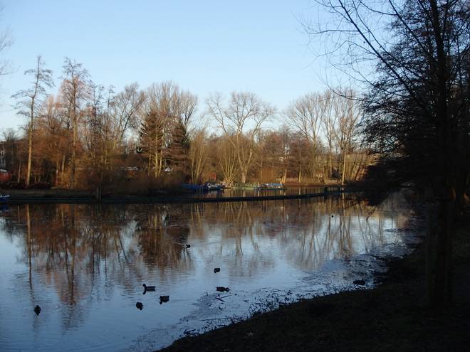 Eppendorfer Mühlenteich 9.31 Uhr Von mir zu Hause bis zum Güterbahnhof Lokstedt sind es nur 2,7 Kilometer. Die Busverbindung sind so dämlich, daß ich nur mit zweimal umsteigen dahin käme und dann 67 Minuten unterwegs wäre. Da nahm ich doch lieber das Fahrrad. |