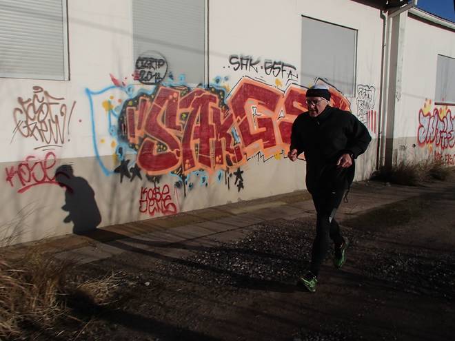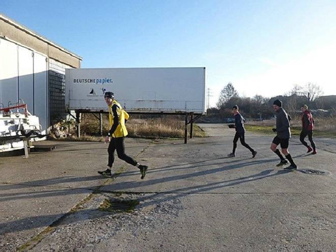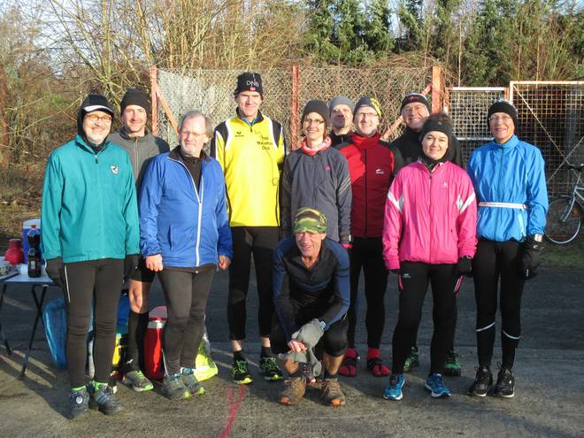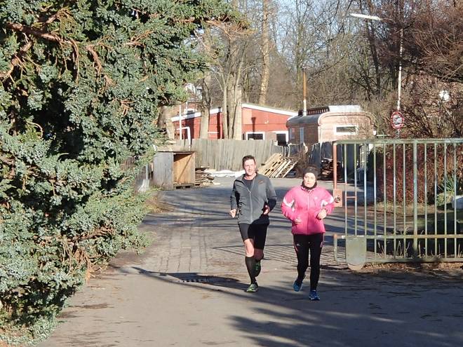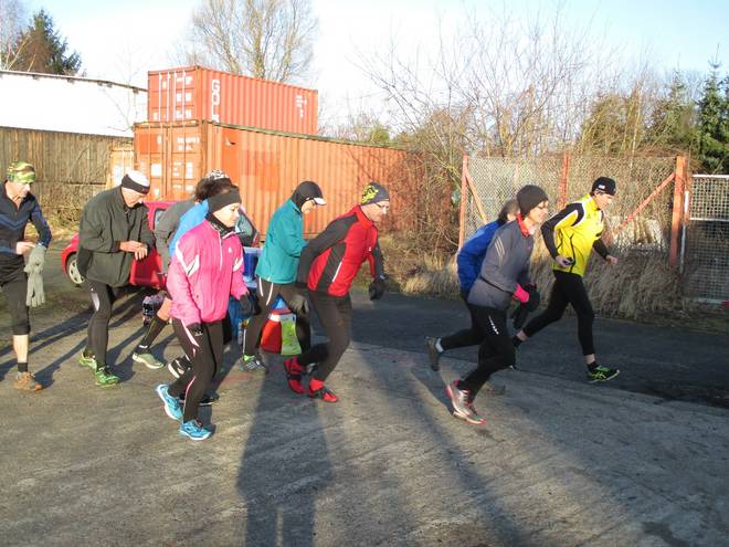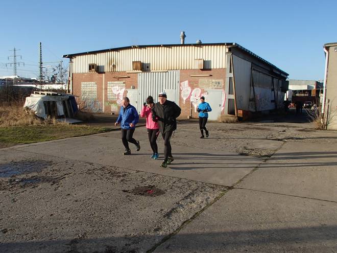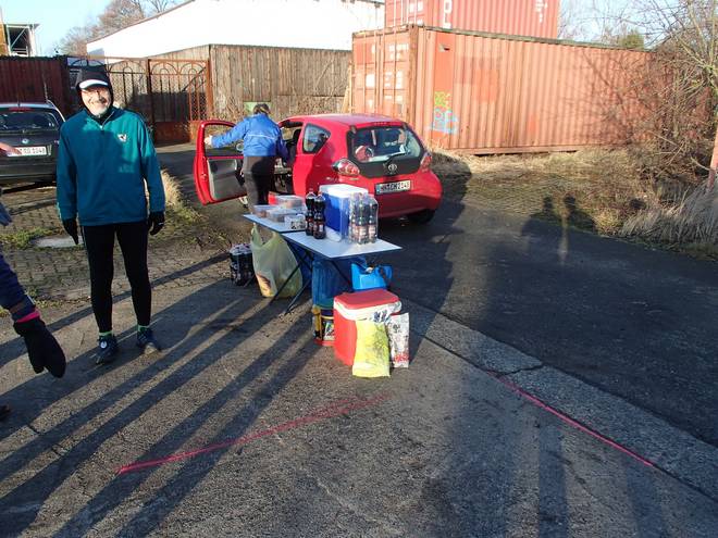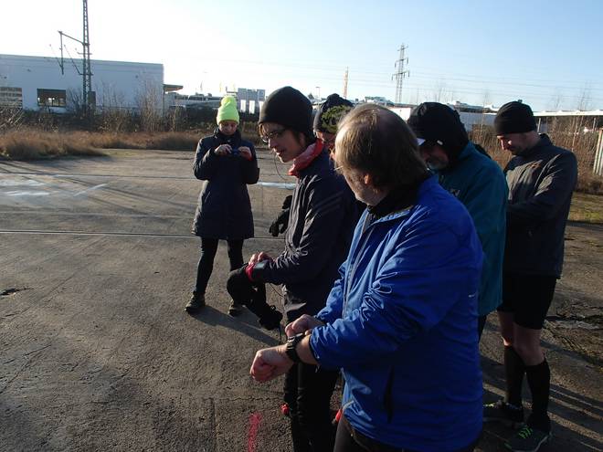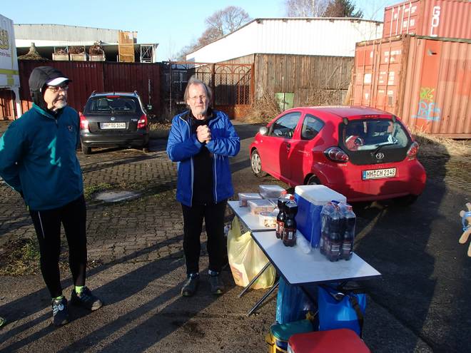 Güterbahnhof Lokstedt 9.51 Uhr Ein eigenen Auto hätte auch so seine Vorteile. Man käme viel schneller zu so manchem Lauf in der Umgebung und könnte sich bei Kälte noch schön ins Warme setzen. So wie ein Teil der Teilnehmer es hier gemacht hat. |