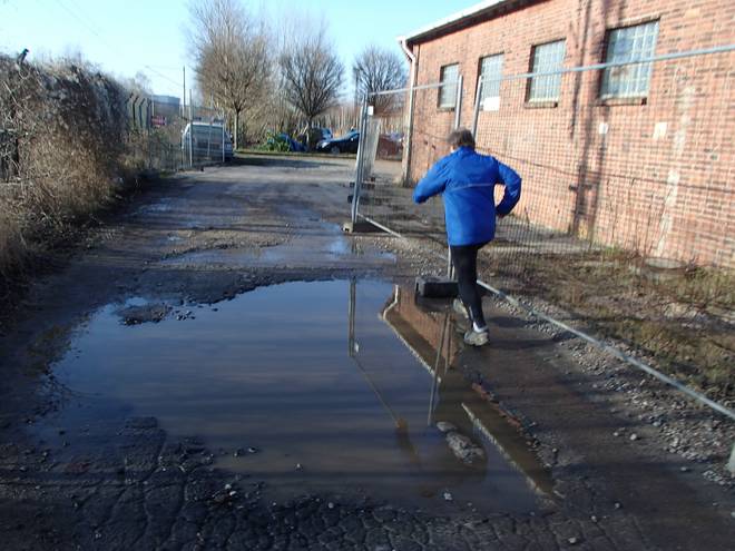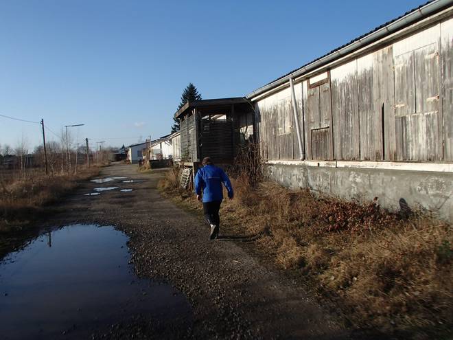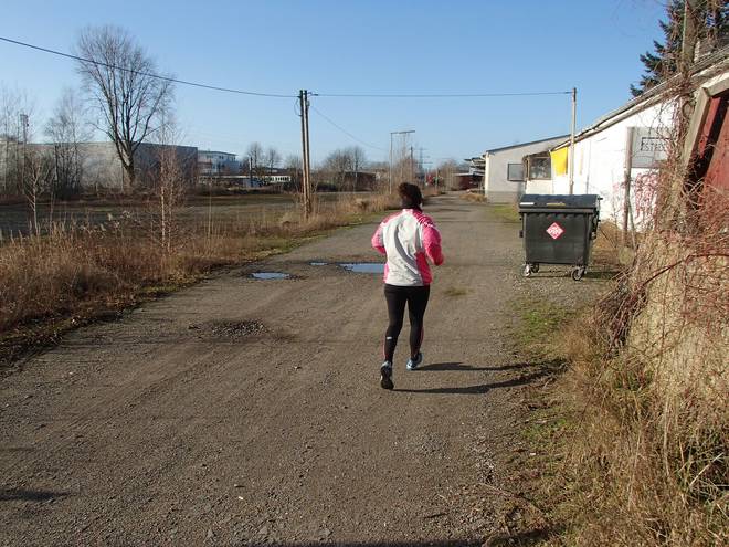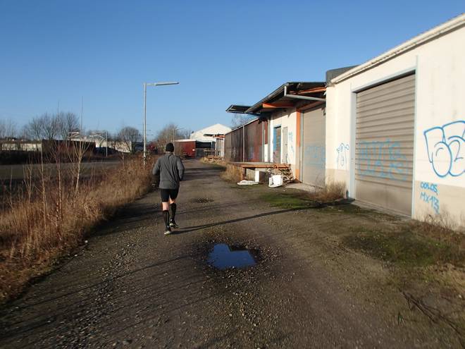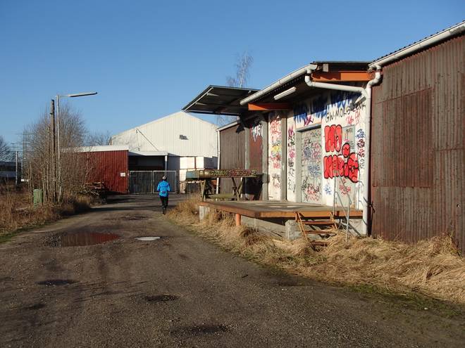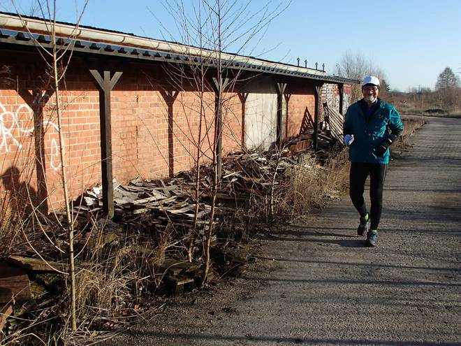 Runde 4 10.39 Uhr / Km 4,8 Das war schon richtig "Lost Place". Viel war auf dem Gelände nicht mehr zu finden. Da war anderthalb Jahre zuvor noch mehr zu sehen. Die meisten Firmen waren abgezogen. |