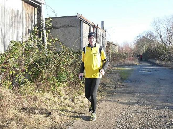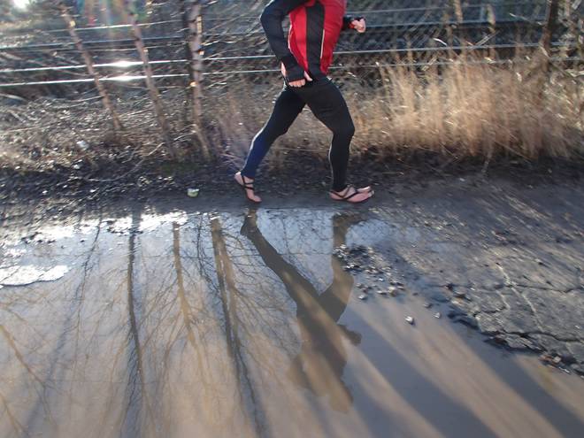 Runde 13 11.29 Uhr / Km 14,7 Allerdings lief Ralf dieses Mal barfuß in Sandalen. So warm war es nun auch wieder nicht. |