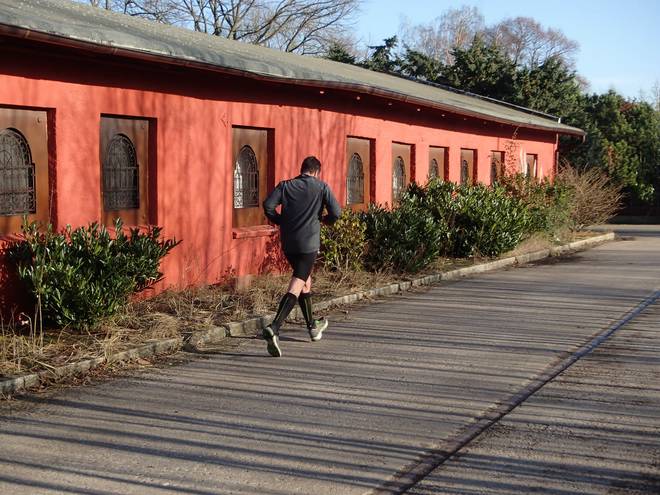 Runde 9 11.11 Uhr / Km 11,0 Mit dem Tempo war das nicht so einfach. Mit den krummen Runden ließ sich so schlecht rechnen, meine Uhr maß jede Runde mit rund 90 Metern zu viel, was natürlich in der Rubrik "Tempo" gut aussah. Ich lief aber keine 4:50 Min/ Km-Runden, sondern lag bei 6:0x Minuten. Foto: Christian |