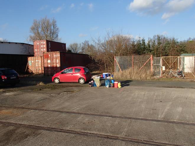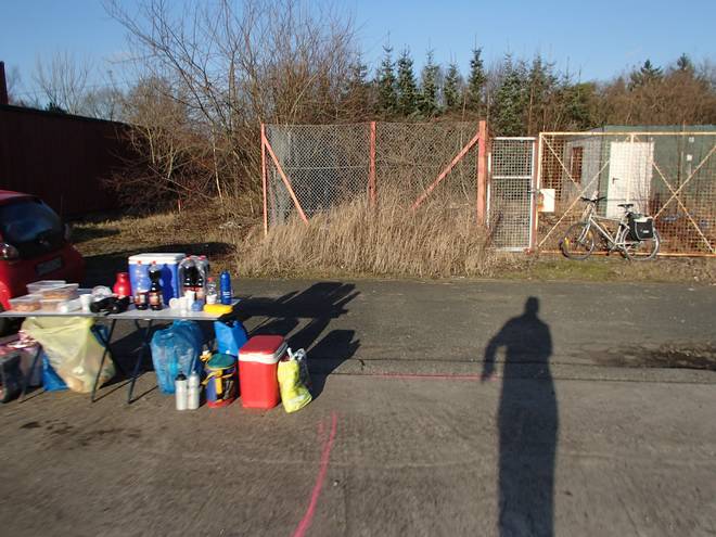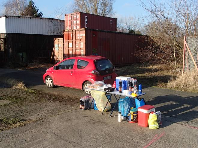 Güterbahnhof Lokstedt 10.10 Uhr Dann kam auch bald Christian angefahren. Schnell wurde alles aufgebaut. Ich hatte nun auch lange genug in der Kälte herumgestanden. |