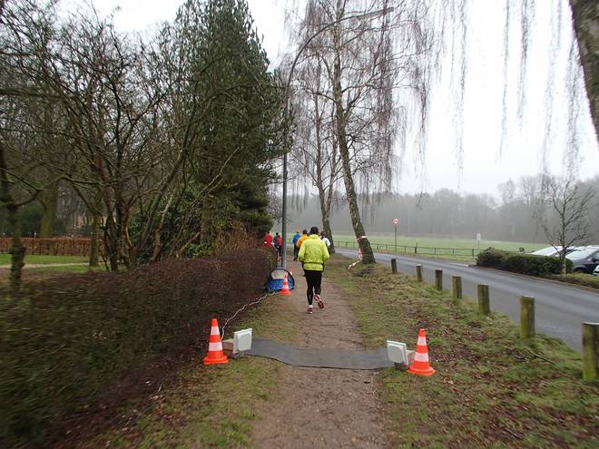 Runde 20 11.13 Uhr / Km 14,2 Aber das hatte ich ja schon vorher gesagt: der Kurs ist nicht einfach und wenn das Überrunden schon 2014 mit 12 Startern hin und wieder Probleme bereitete, dann würde es mit 45 Läufern nicht einfacher werden. Zudem hat der Kurs recht viele Kurven, die man zum Teil nicht im vollen Tempo laufen kann. Dazu kam der weiche Boden. Oder anders formuliert: nur weil man Marathon unter 3:30 Stunden laufen kann, kann man das nicht auch zwingend hier. |