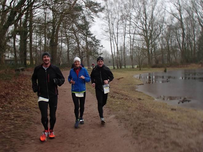 Runde 1 10.02 Uhr / Km 0,001 43 Marathonstarter und zwei Staffelläufer machten sich auf die 59 Runden um den See. Bei 723,8 Metern je Runde also 42,704 Km. (Foto: ndr) |