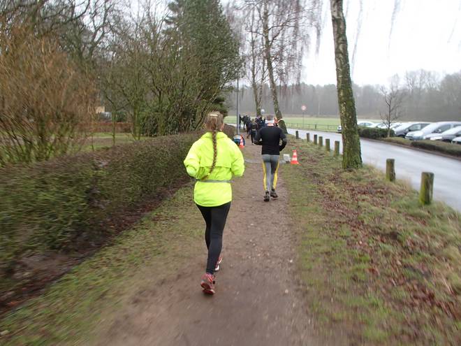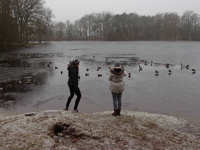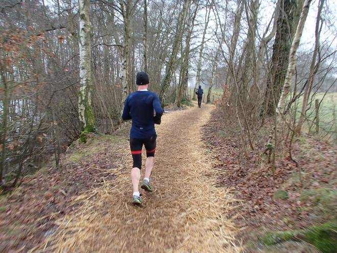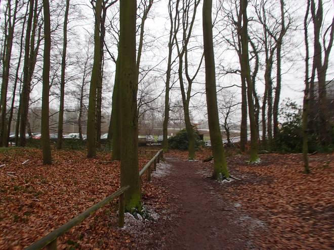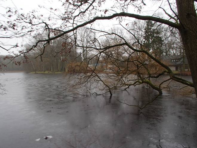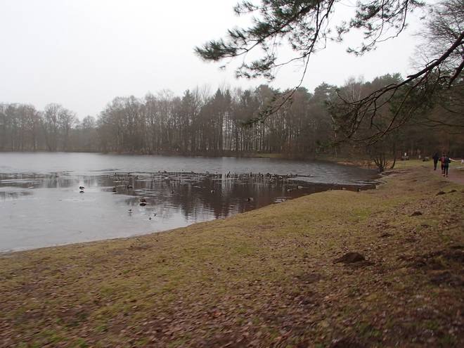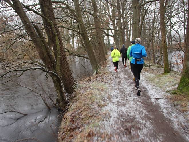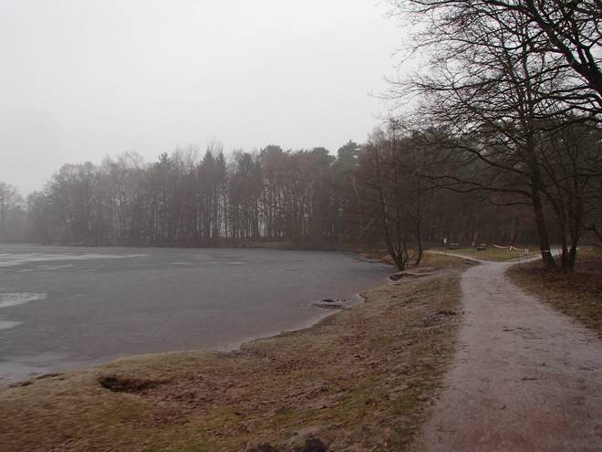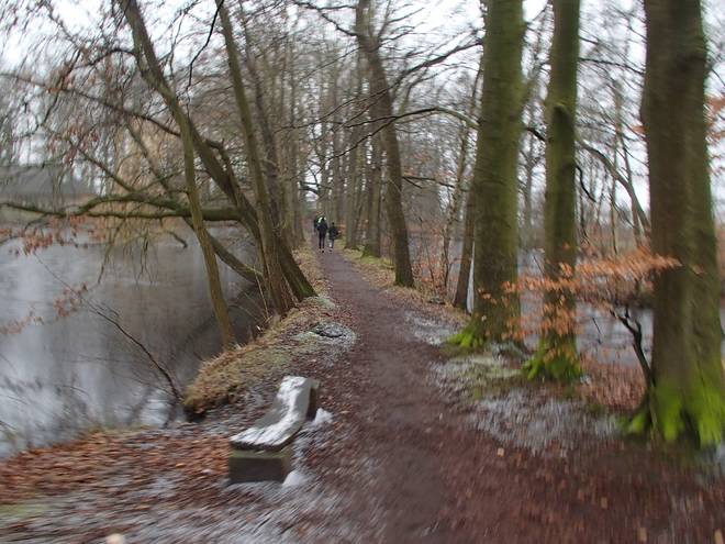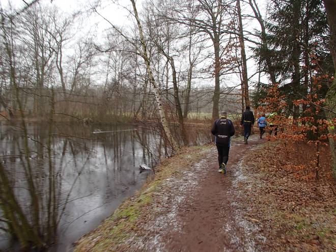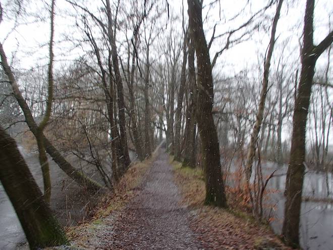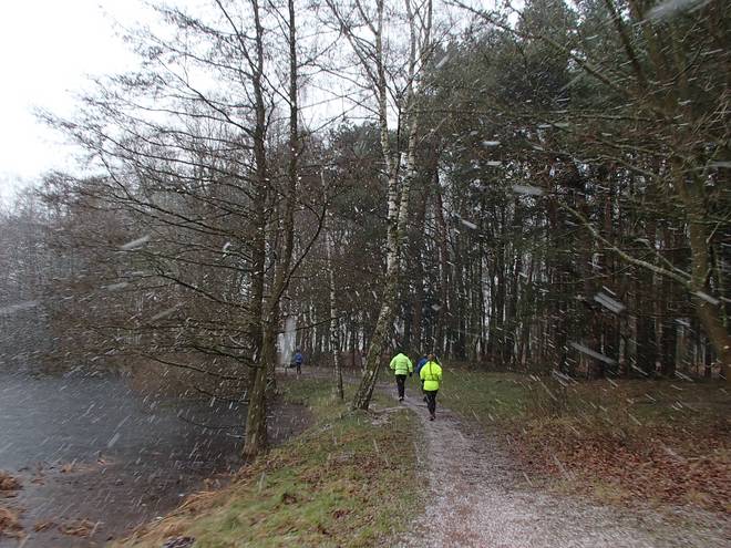 Runde 41 12.27 Uhr / Km 28,9 Nach dem Schneefall kamen dann doch noch einige Spaziergänger an den See. Die hielten sich aber zumeist nur hier am Anfang der Runde auf. |