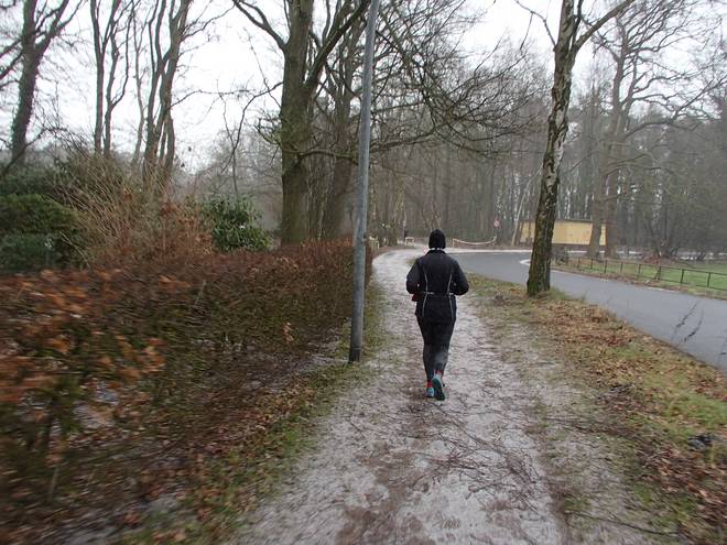 Runde 33 12.00 Uhr / Km 23,7 Auch wenn es nicht so aussehen mag, durch die Schneeschicht wurde das Laufen nicht nennenswert schwieriger. |