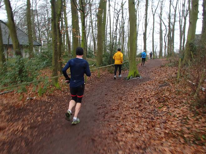 Runde 22 11.19 Uhr / Km 15,2 Anfang der 22. Runde lief ich auf das inzwischen auf vier Läufer angewachsene Verfolgerfeld auf. |