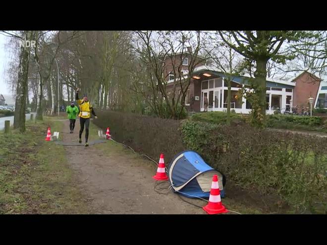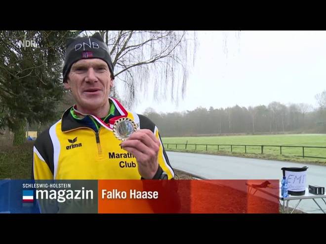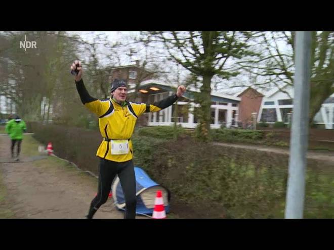 Finish 13.46 Uhr / Km 43,428 "Wenn's irgendwann beim Laufen nicht mehr richtig geht, dann denkt man immer... okay... am Ende dann gibt's dann 'ne Medaille und dann.... dann läuft's auch weiter." (O-Ton, ausgestrahlt noch am selben Abend) (Foto: ndr) |
