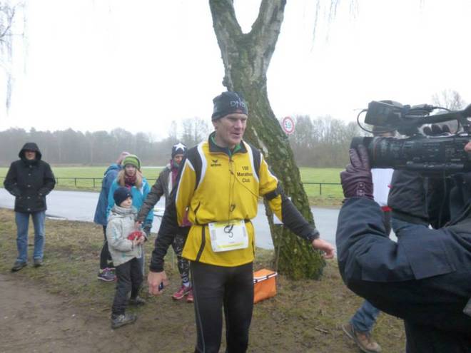 Finish 13.40 Uhr / Km 43,428 Und ins Fernsehen kam ich dann auch sogleich. (Foto: Paolo Francesco Gino) |