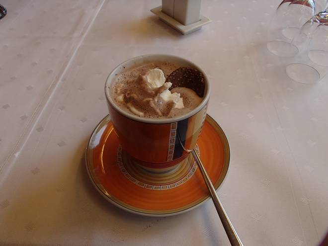 Sibirien, 14.43 Uhr Endlich im Warmen. Da kam mir der heiße Kakao gerade recht. Den hatte ich im Vorjahr auch schon genossen. Köstlich. Das tollste war allerdings, daß man sich die Chefin sogar persönlich an meine Getränke-Wahl aus dem Vorjahr erinnerte. So schnell hatte selbst ich nicht mitgedacht. |