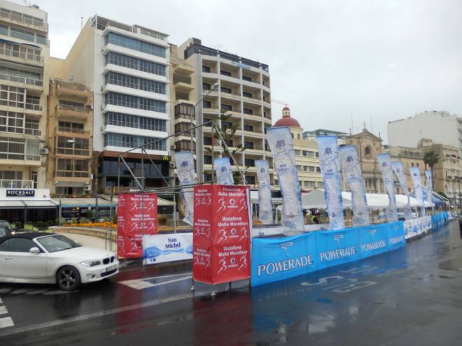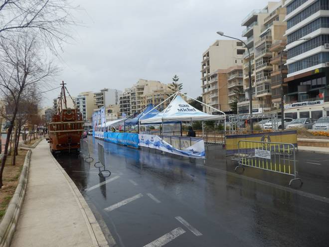 Triq Sant' Antnin / Tas-Sliema 12.52 Uhr Malta im strömenden Regen einen Tag vor dem Marathon. Aber das Ziel war schon aufgebaut. |
