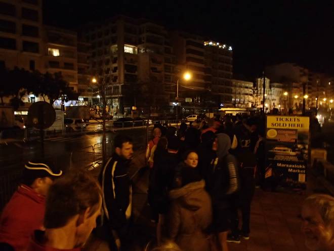 Sliema Bus Terminus Tas-Sliema 5.55 Uhr Dann stellte ich mich aber doch lieber mal bei der schnell wachsenden Warteschlage an. Man wußte ja nie, wie schnell sich die abbauen würde. |
