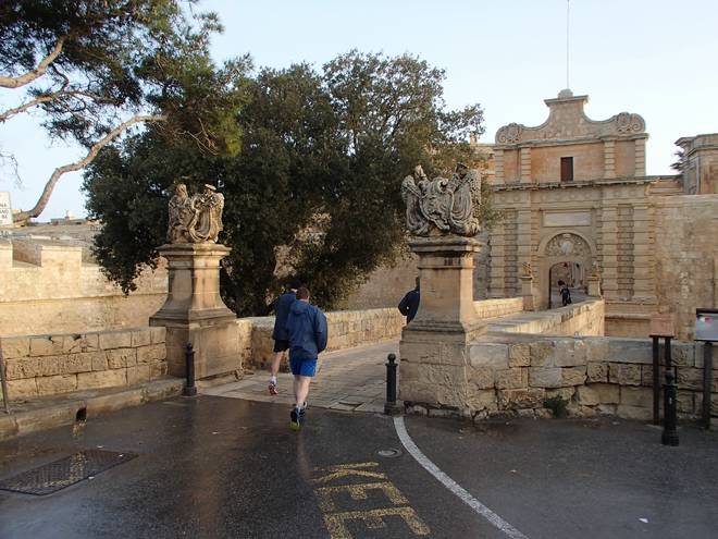 L-Imdina Is-Saqqajja 7.28 Uhr Meist ziehe ich ja eher zu viele Sachen an, aber hier wollte ich ja unbedingt in kurzer Hose laufen. Da muß man halt frieren. |
