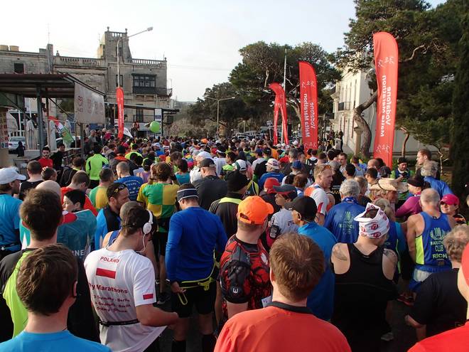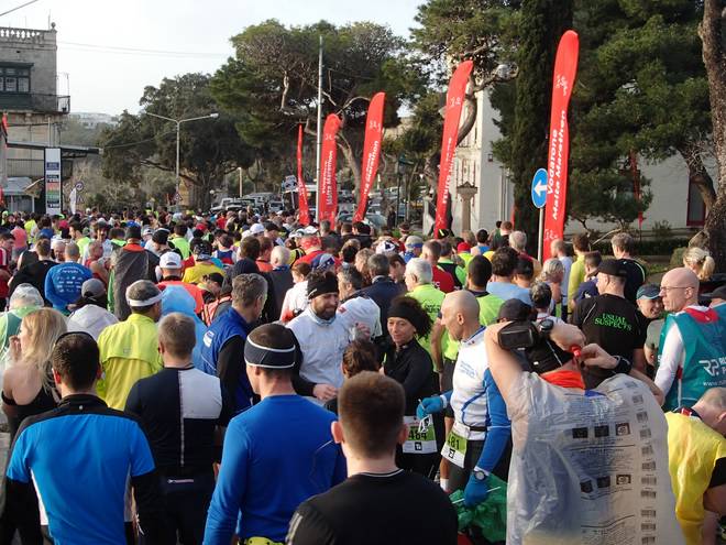 L-Imdina Is-Saqqajja 7.23 Uhr Viele Läufer aus Italien und Spanien waren zu finden. Insgesamt ein sehr internationales Feld. |