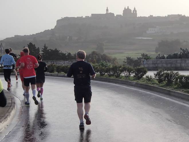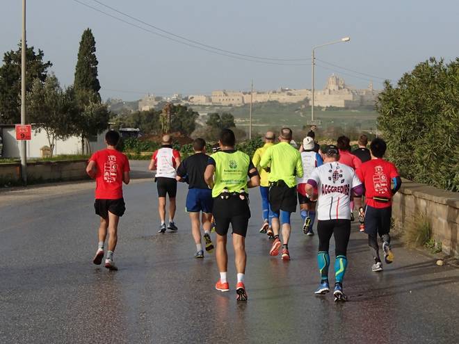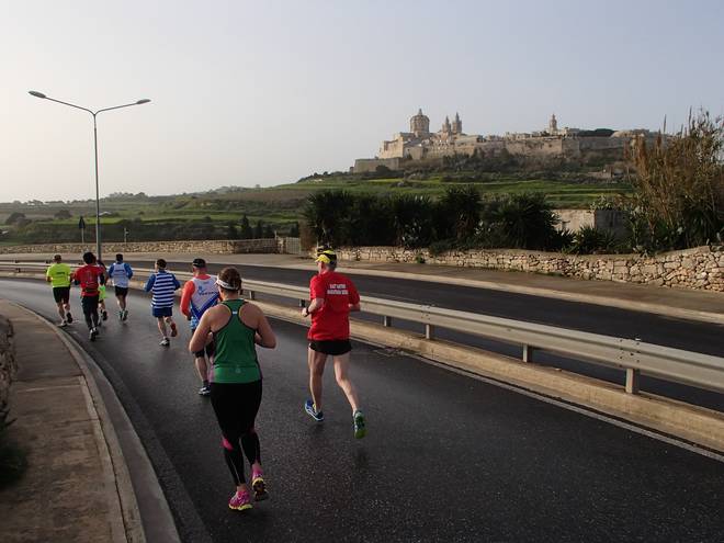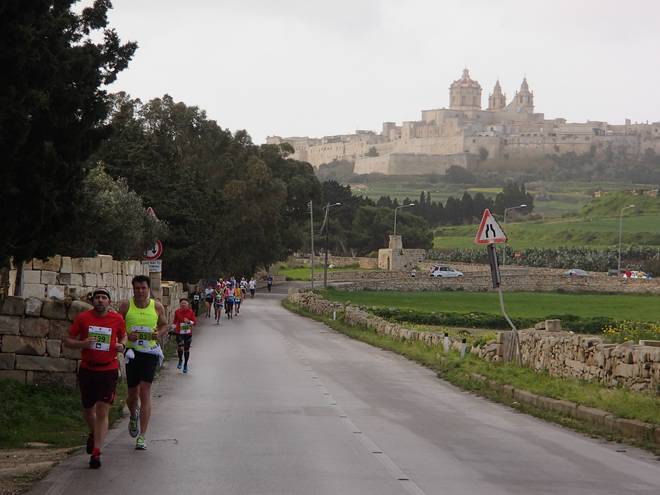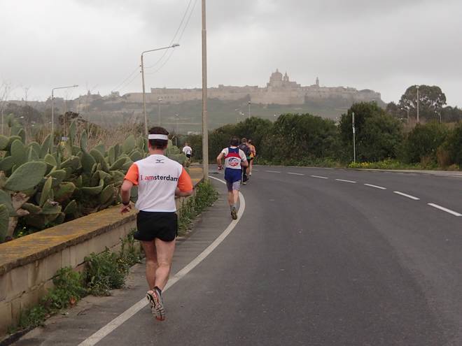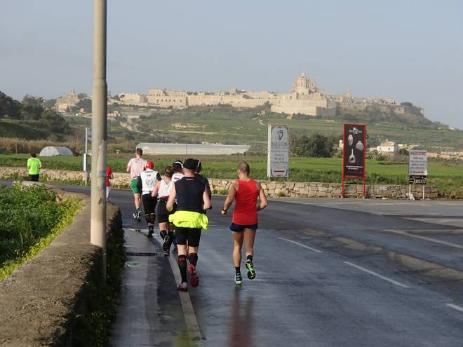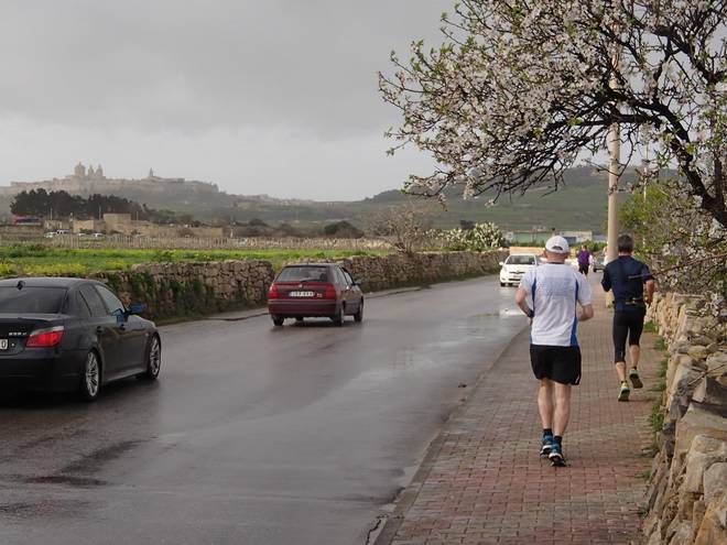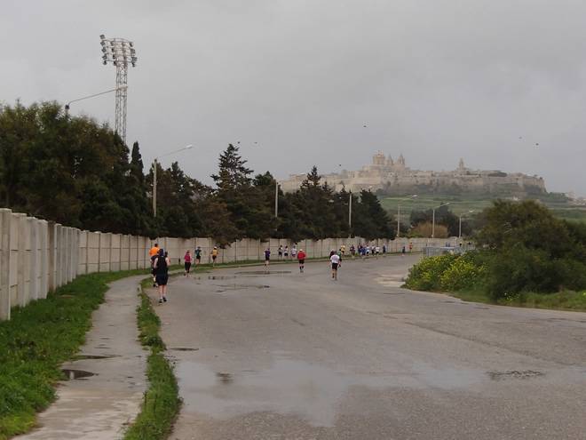 L-Imtarfa Triq Il Maltin Internati U Eziljati 7.47 Uhr / Km 3,4 Den Blick auf Mdina konnte man oft genießen auf dem Kurs. |