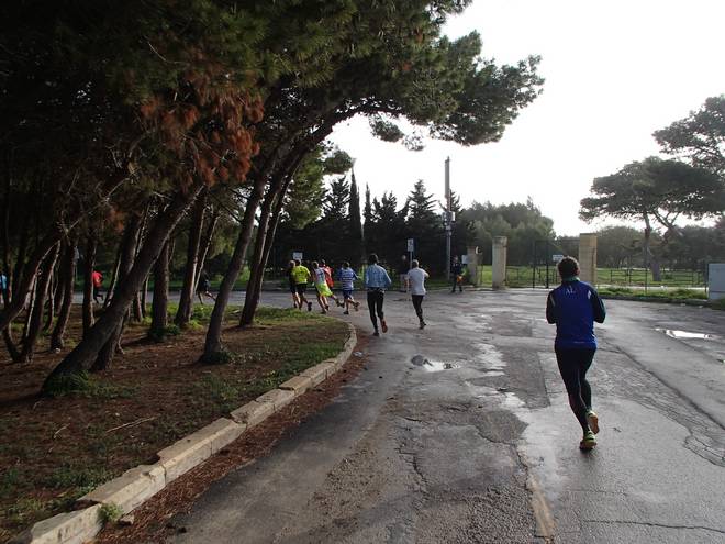 Ħ'Attard Ta' Qali Nazzjonali Park 9.39 Uhr / Km 24,4 Das Rennen war noch lange nicht vorbei. Nun fielen die ersten Tropfen vom Himmel. Die waren ja auch angekündigt worden, sollten aber viel früher kommen. |