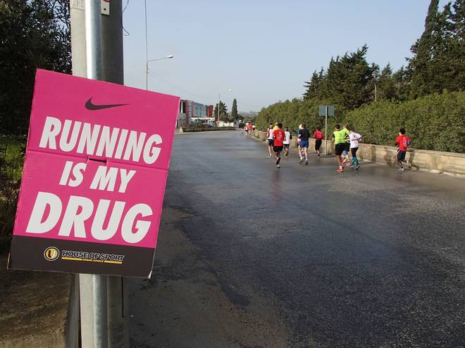 Ħ'Attard Vjal L-Istadium Nazzjonali 8.18 Uhr / Km 8,9 Solche Motivationsschilder gab es einige am Kurs zu finden. |
