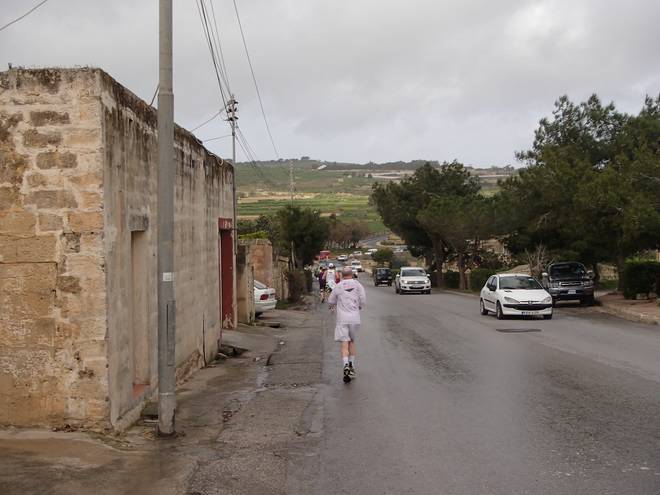 Ir-Rabat Triq Buqana 9.00 Uhr / Km 17,0 Nun kamen 1200 lustige Meter. Bergauf und gegen den Wind an, der hier mehr als heftig stürmte. Jetzt klappte es mit dem Überholen erst so richtig gut. Als ob ich mich von so etwas Sturm und Berg würde aufhalten lassen. :-) |