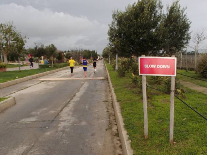 Stadium Nazzjonali ta Ta' Qali 8.04 Uhr / Km 6,2 War im Grunde auch egal. Sonst hatte ich auf Malta auch nie die Orientierung behalten und mich ständig und überall verfahren. Im Gegensatz zum Fahren mit dem Auto wurde man hier aber von der Masse geführt und mußte nur hinterher laufen. |