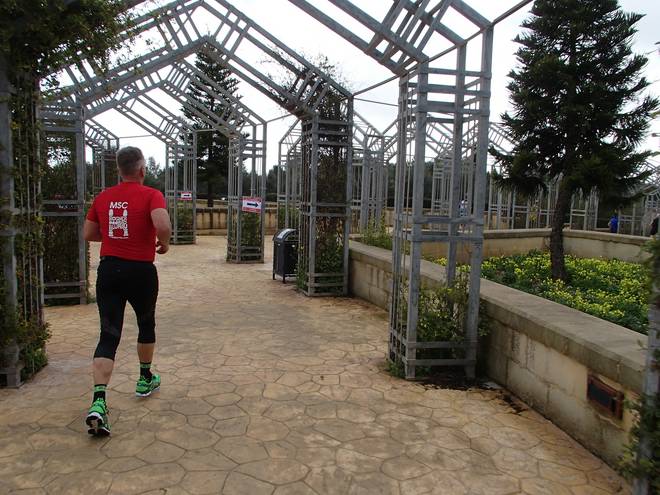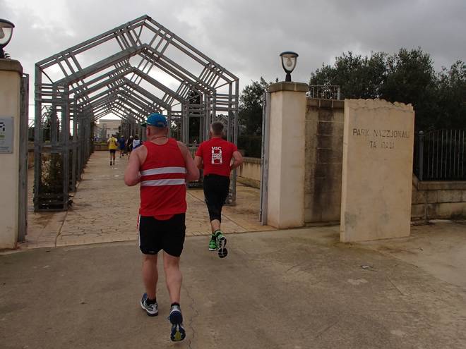 Ħ'Attard Ta' Qali Nazzjonali Park 9.39 Uhr / Km 24,3 Der Magen hatte sich nun wieder beruhigt. Da war zwar beruhigend, aber noch waren knapp 18 Kilometer zu laufen. |