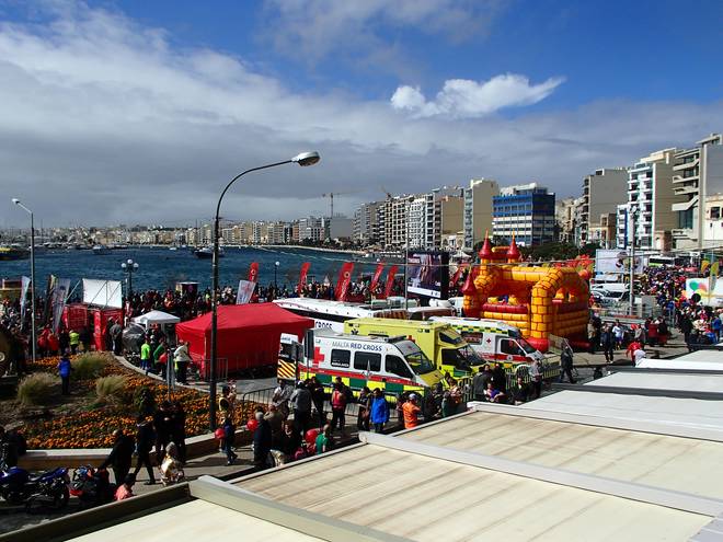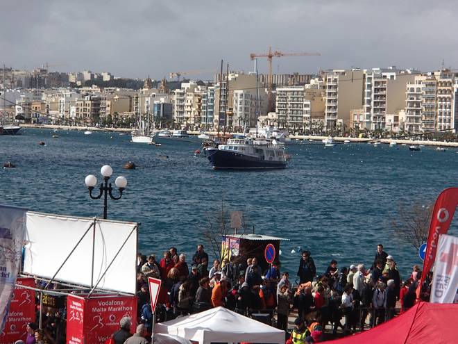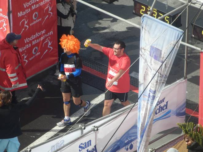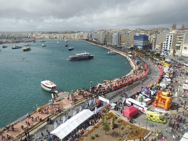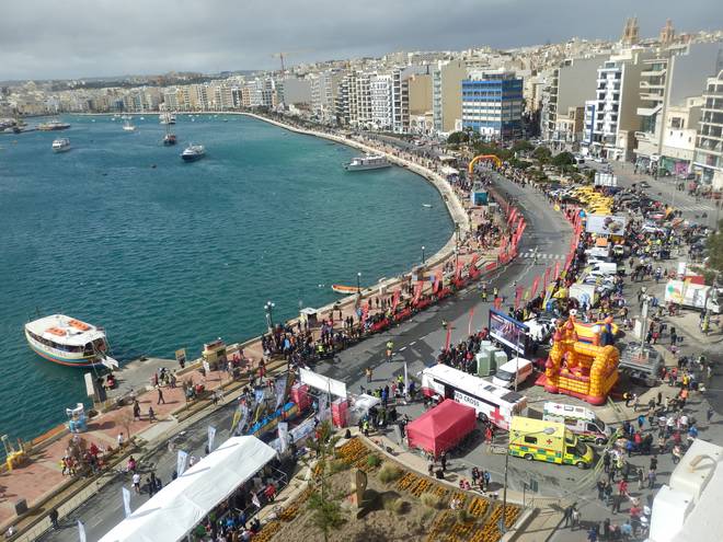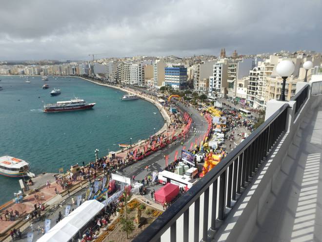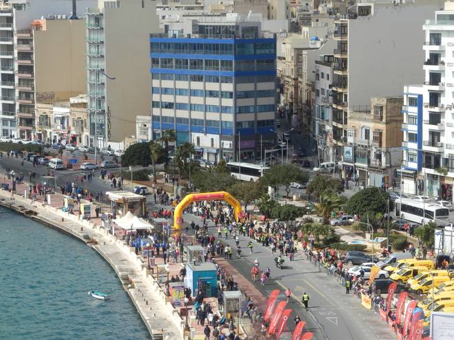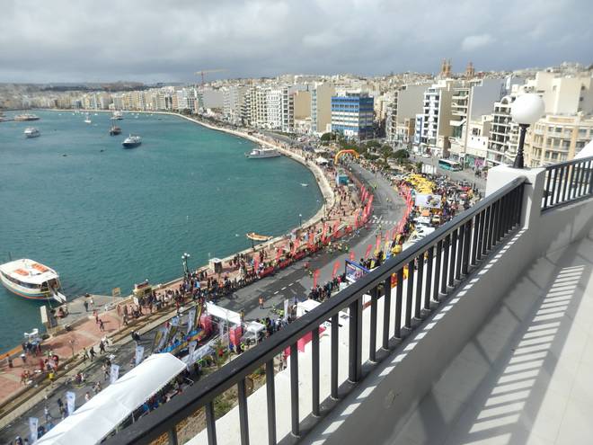 Tas-Sliema Id-Dahla Ta'Tas-Sliema 11.44 Uhr Aber schöner Ausblick geht noch besser. Vom achten Stock des Sliema Marina Hotel hatte man diesen Traumblick auf die letzten Meter des Marathons. Und auf noch mehr... |