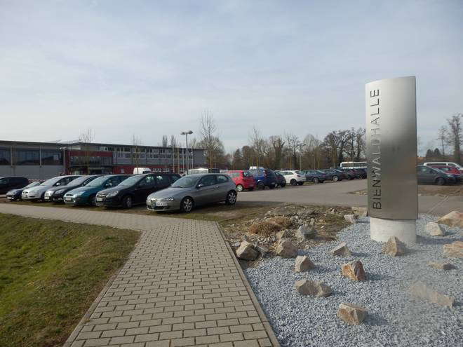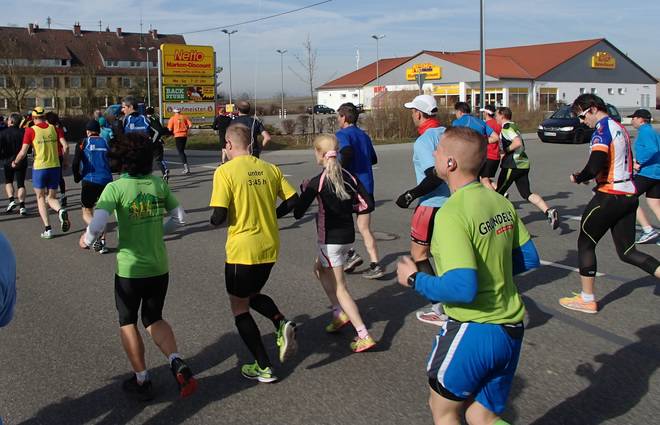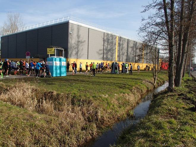 Bienwaldhalle 9.09 Uhr Ankunft der Läufer. |