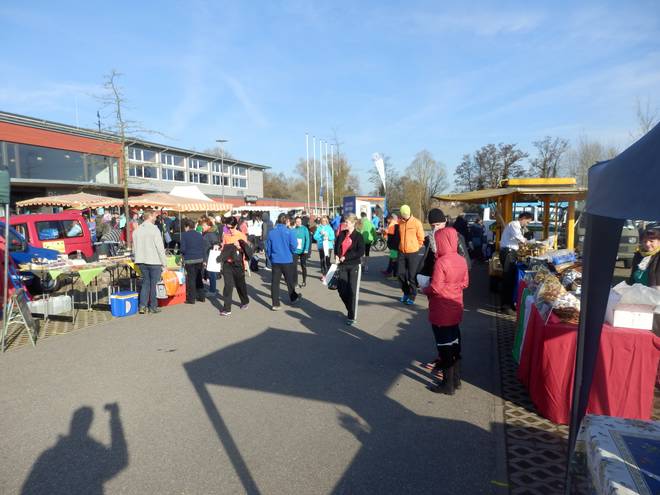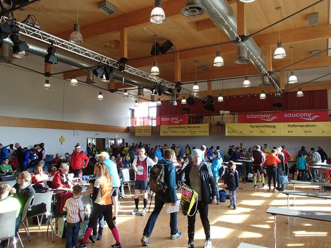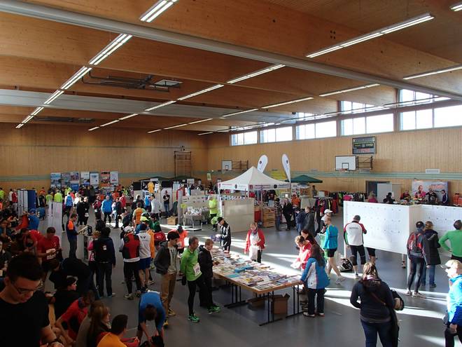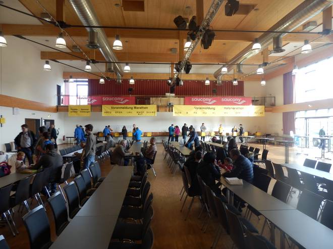 Bienwaldhalle Hier war die Ausgabe der Startnummern und auch eine Marathon-Messe zu finden. |