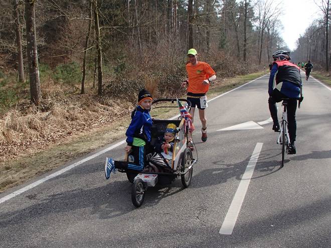 Grenzstraße Schaidt 11.36 Uhr / Km 18,4 Die 4:00-Stunden-Läufer. |