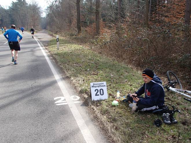 K15 11.06 Uhr / Km 12,4 Und dann waren sie weg. Ich durfte geradeaus weiter laufen. |