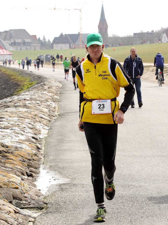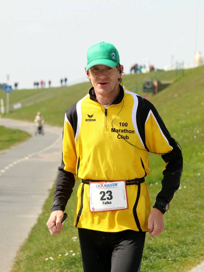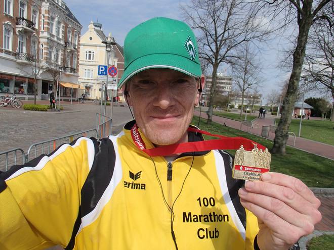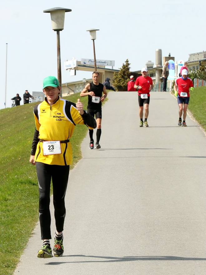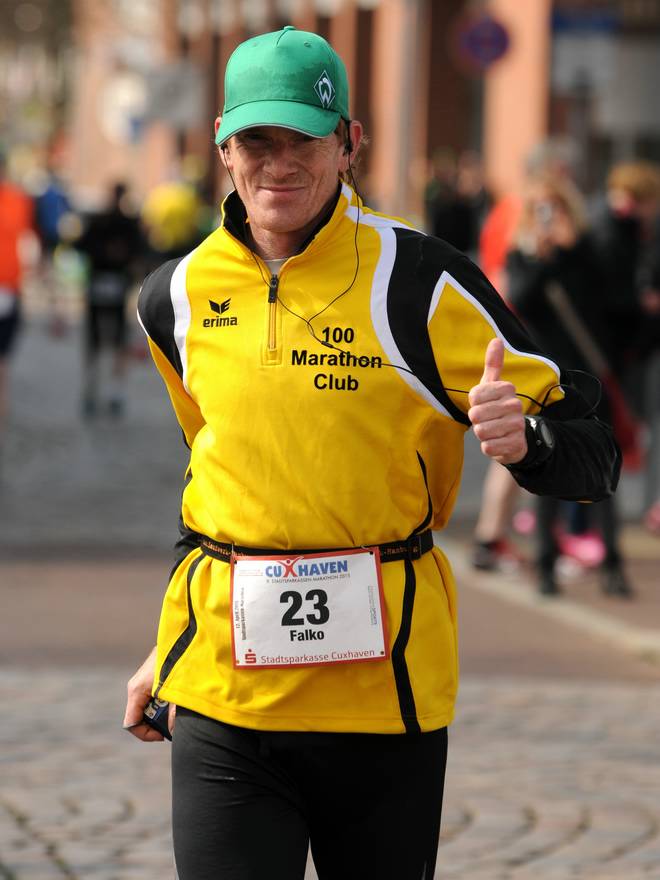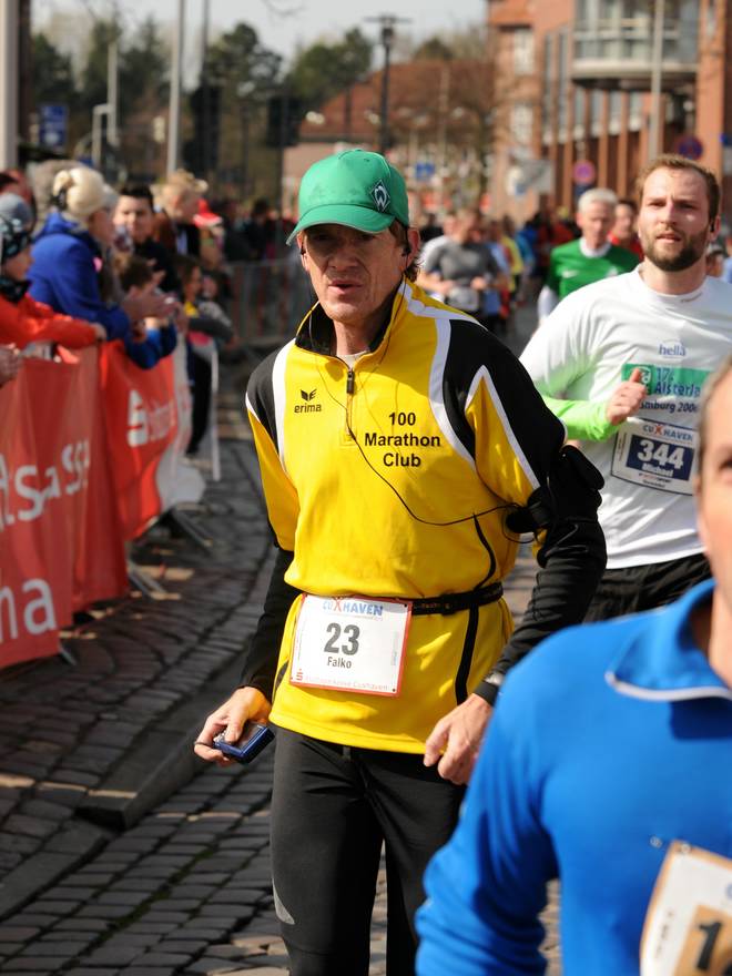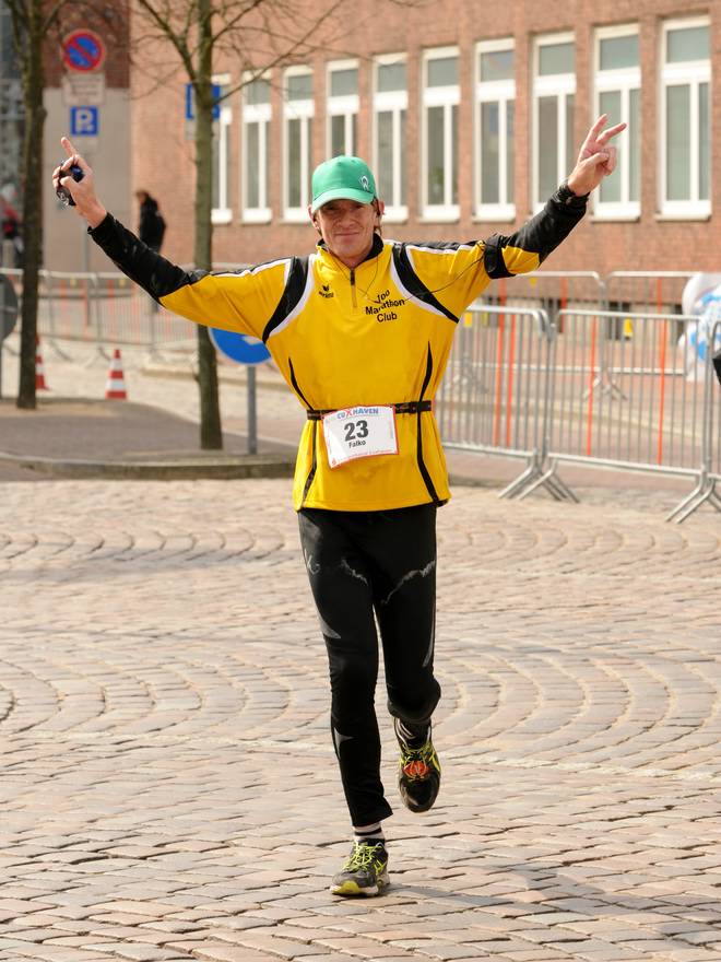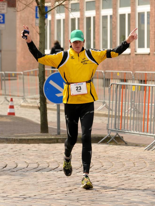 Kaemmererplatz Finish 14.24 Uhr / Km 42,195 Am 10. April 2016 werde ich wieder in Cuxhaven starten. Dann zum zehnten Male. Mal abwarten, ob es da etwas Besonderes für die Jubilare geben wird. Nach Stand 2014 waren noch acht Läufer jedes Mal dabei gewesen. |
