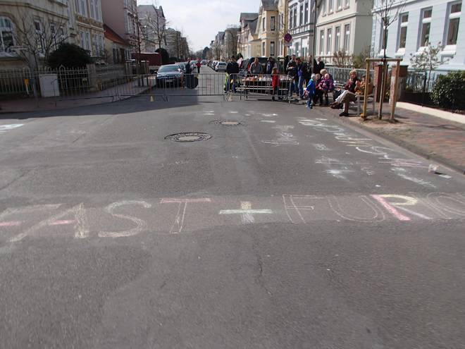 Schillerstraße Catharinenstraße Runde 2 11.36 Uhr / Km 12,0 Hier waren sehr fleißige Malermeisterinnen bei der Arbeit. |