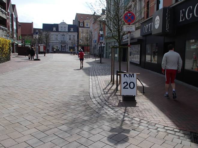 Schillerstraße Runde 4 14.12 Uhr / Km 41,0 Schilder-Wahn? Also die 10-Kilometer-Läufer sind nach einen Kilometer im Ziel. Ab hier Kurz danach dann Marathon Km 41. Ab da sind es dann 1,195 Km ins Ziel. Und das auf der identischen Strecke. Was es nicht alles geben kann. :-) |