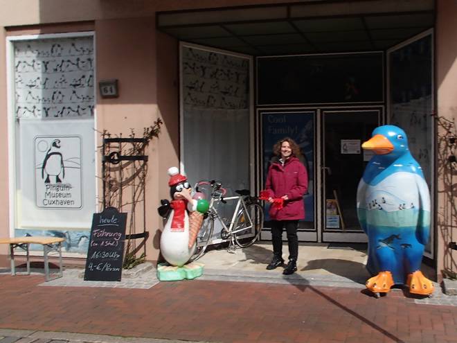 Schillerstraße Runde 4 13.30 Uhr / Km 32,8 Die Dame vorm Pinguin-Museum ist jedes Jahr von Anfang bis zum Ende mit dabei. Irgendwann sollte ich das Museum mal besuchen. |