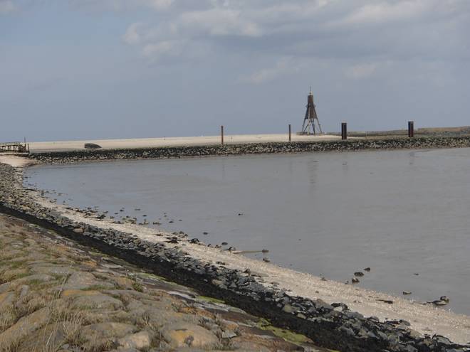 Grimmershörnbucht Runde 4 13.45 Uhr / Km 35,3 Blick auf die Kugelbake. |