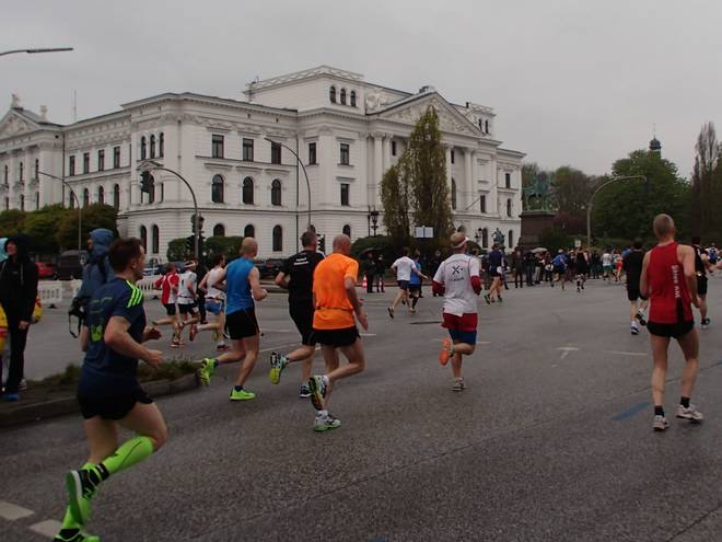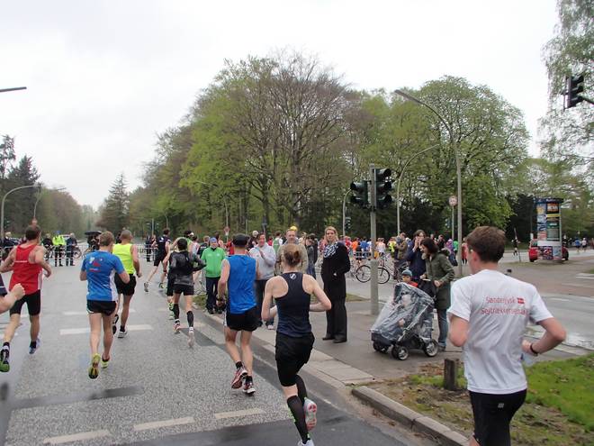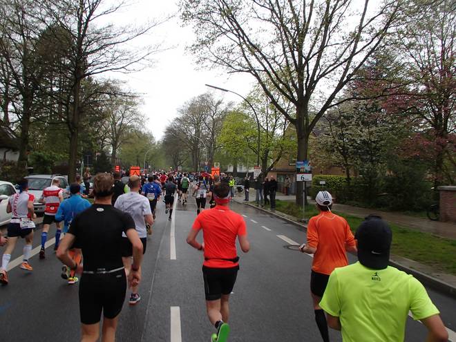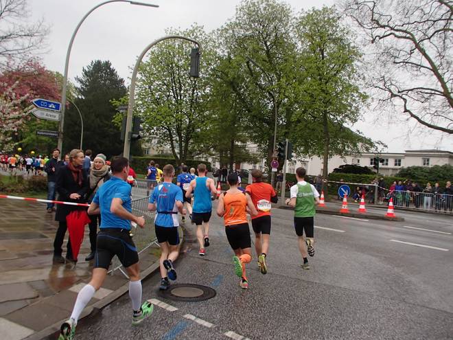 Palmaille 9.43 Uhr / Km 10,0 42:02 Minuten bei Kilometer 10. 20:57 Minuten für die zweiten fünf Kilometer. Das Tempo von 4:12 Min/Km war immer noch etwas höher als das geplante Tempo. |