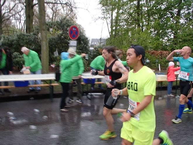 Willy-Brandt-Straße 10.01 Uhr / Km 14,2 An den Verpflegungsständen griff ich alle fünf Kilometer zu. So heiß war es ja nicht, als daß ich übermäßig hätte trinken müssen. |