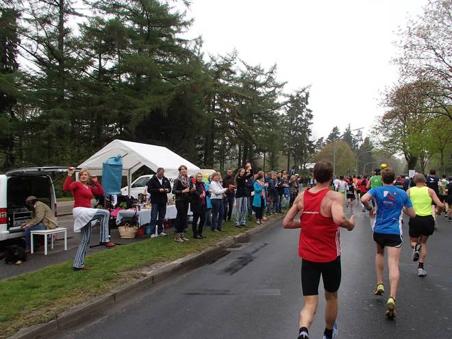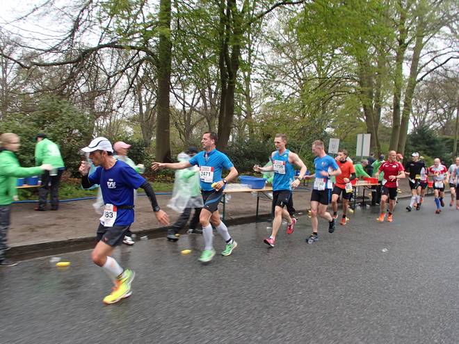 Holländische Reihe 9.18 Uhr / Km 3,8 Die immer wieder neuralgische erste Verengung durchlief ich zum Glück problemlos. Bis zu den Ballons war es aber immer noch weit. |