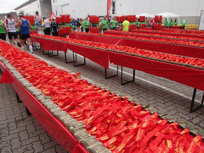 Hamburg Messe 12.31 Uhr Wow... reichlich Medaillen. es waren ja auch noch rund 12000 Läufer hinter mir auf der Strecke. |