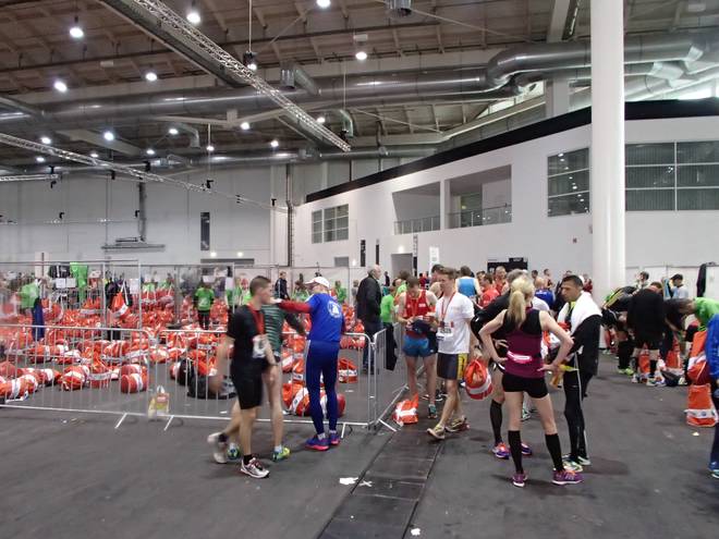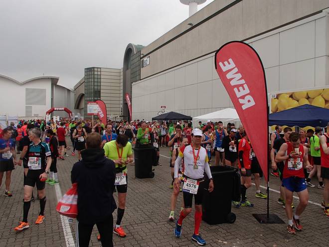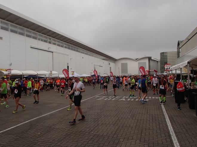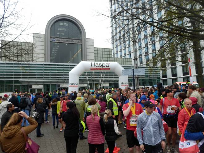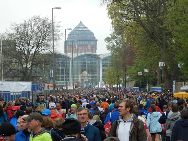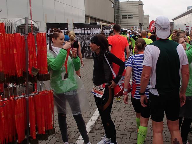 Hamburg Messe 12.42 Uhr Und während ich meinen Beutel wiederbekam ging draußen der ganze große Regen los. Die armen Läufer, die immer noch auf der Strecke waren. |