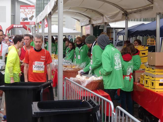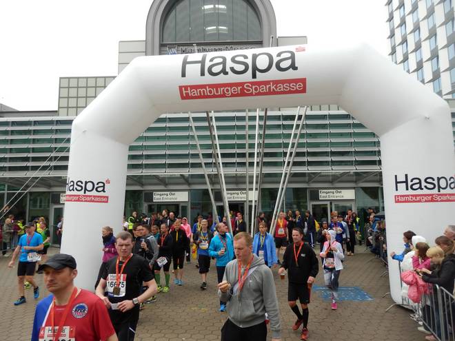 Hamburg Messe 12.34 Uhr Nach dem Bewundern der Medaille ging es ab die Nach-dem-Lauf-Verpflegung. |